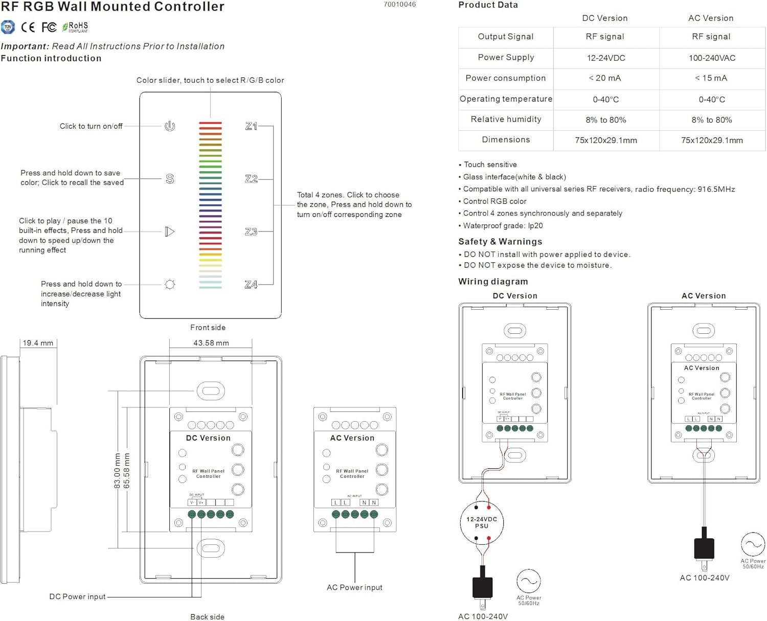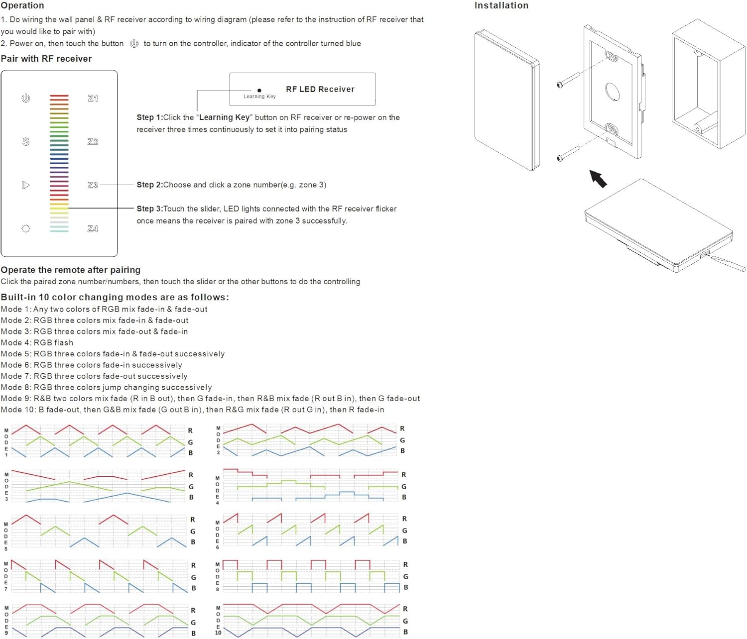 Sunricher SR-2830RGB US DC RF Wall Mounted Controller for RGB Color Price:¥
